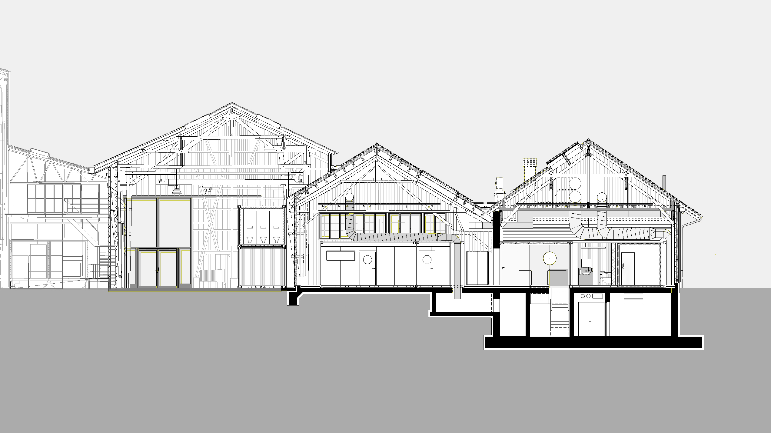 Es ist eine neue "Eventhalle" entstanden, die im Sommer bestuhlt 180 Sitzplätze für Theater/Konzerte oder ohne Bestuhlung einen Partyraum bietet. Im Winter entsteht eine Eisbahn auf der Bühne. In der mittleren Halle wurde ein Restaurant mit Profiküche eingerichtet, mit einem Indoorbereich und überdachten Outdoorplätzen. In der ehemaligen Schreinerei befindet sich ein frei möblierbarer Saal mit Theke, der in kleinere Einheiten teilbar ist und für private oder öffentliche Feiern vermietet wird.