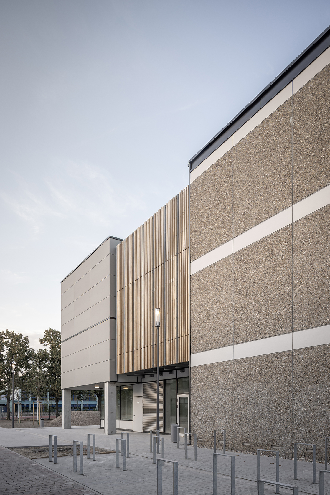 Und damit nicht genug! Dem vielleicht etwas spröden Waschbetonbau aus den 60er Jahren wurde durch die Ergänzung einer lichtdurchfluteten dreigeschossigen Halle und einer großzügigen Dachterrasse neues Leben eingehaucht. Gemeinsam mit dem robusten und stimmigen Materialkonzept wird daraus eine sehr gelungene neue Grundschule.